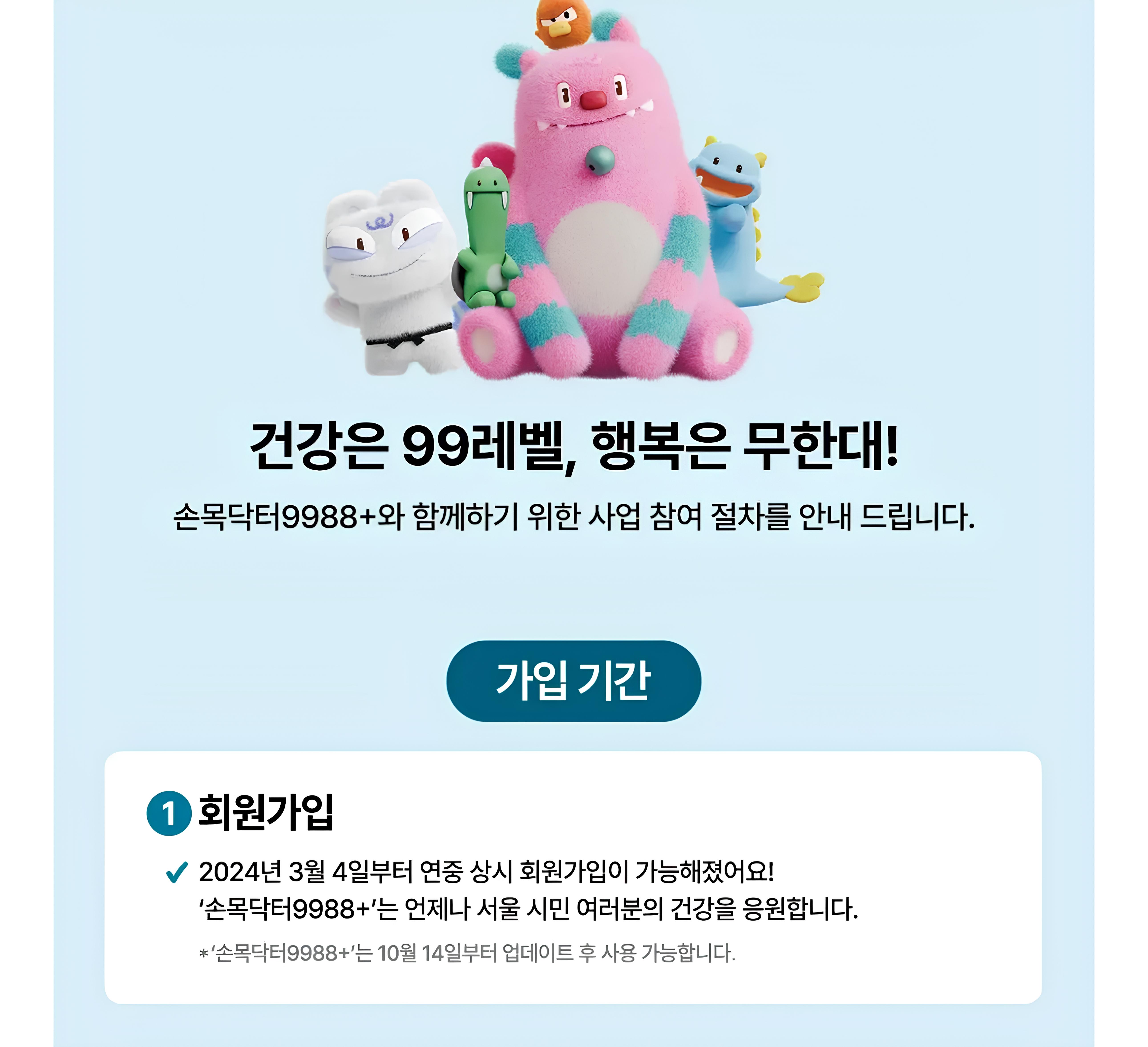 서울에 재직 중이라면 참여가 가능하니, 관심 있는 분들은 서울시 손목닥터9988 홈페이지에서 신청하세요. 건강하고 행복한 삶을 위해 손목닥터9988과 함께하세요!