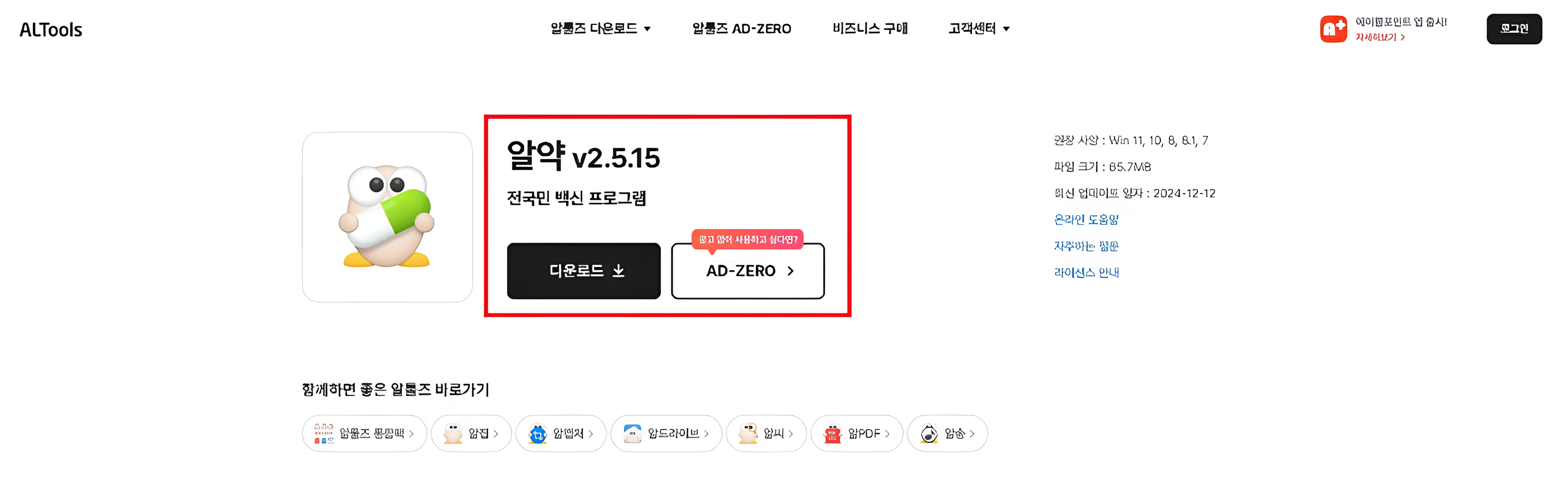 알약은 대한민국에서 가장 많이 사용되는 무료 백신 프로그램 중 하나로, 이스트소프트에서 제공하는 알툴즈 홈페이지에서 쉽게 다운로드할 수 있습니다.