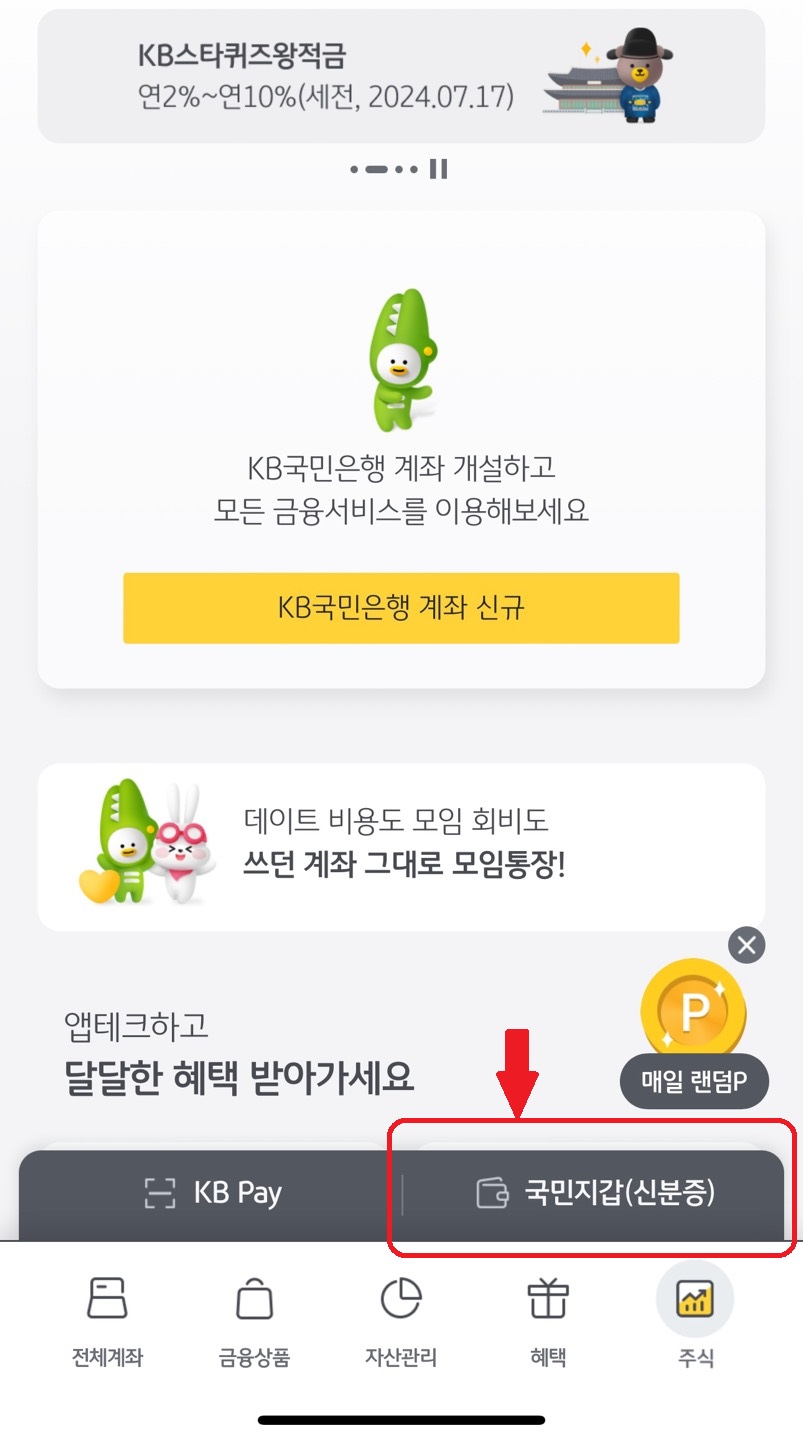 * KB스타뱅크앱에서 국민지갑 클릭 - 여권재발급신청하기