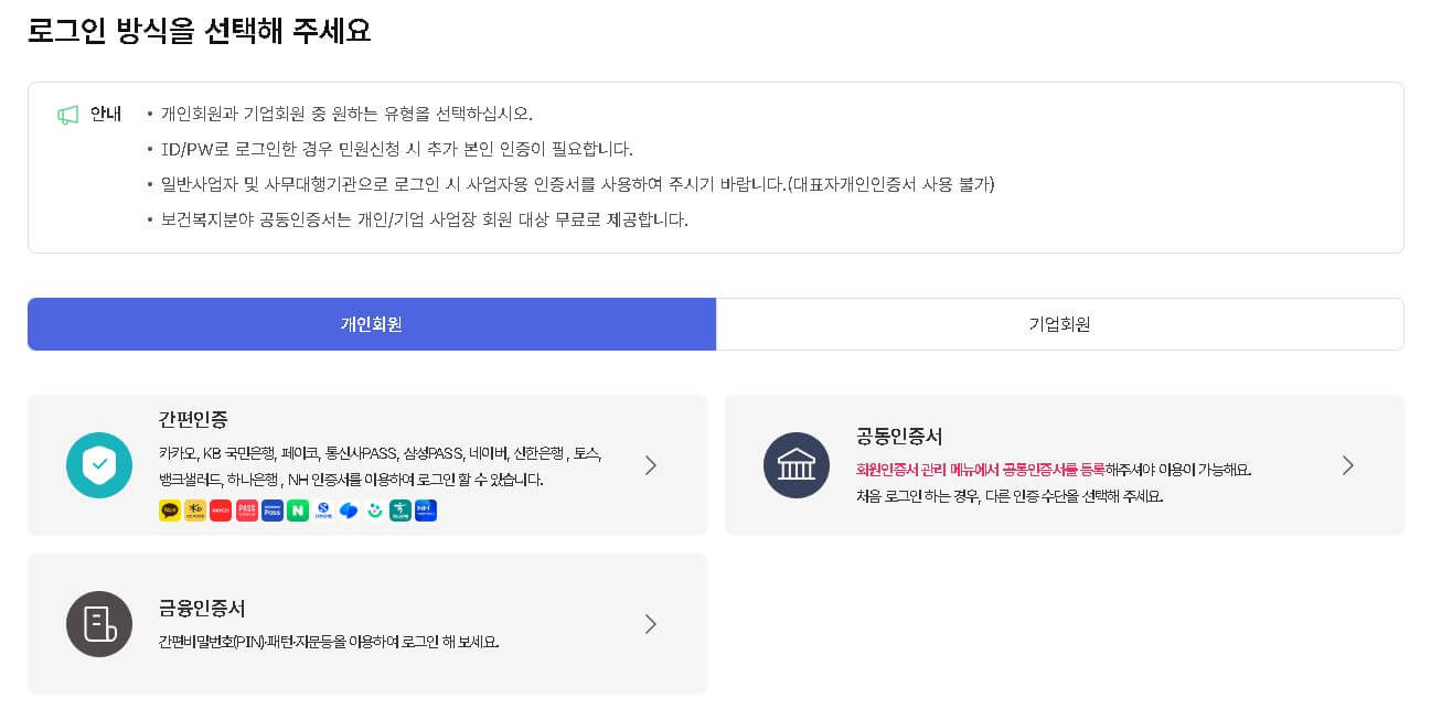 ✔️ 로그인 (회원가입 필수) 간편 인증불가