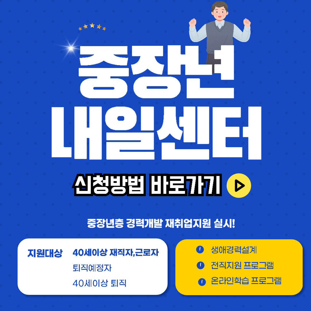 중장년층을 위한 다양한 프로그램과 지원이 이루어지는 이곳은 특히 은퇴 후 경력 재설계 및 새로운 도전을 원하는 분들에게 큰 도움이 되는 중장년내일센터 신청방법, 지원대상, 센터운영에 대해 알아보겠습니다.