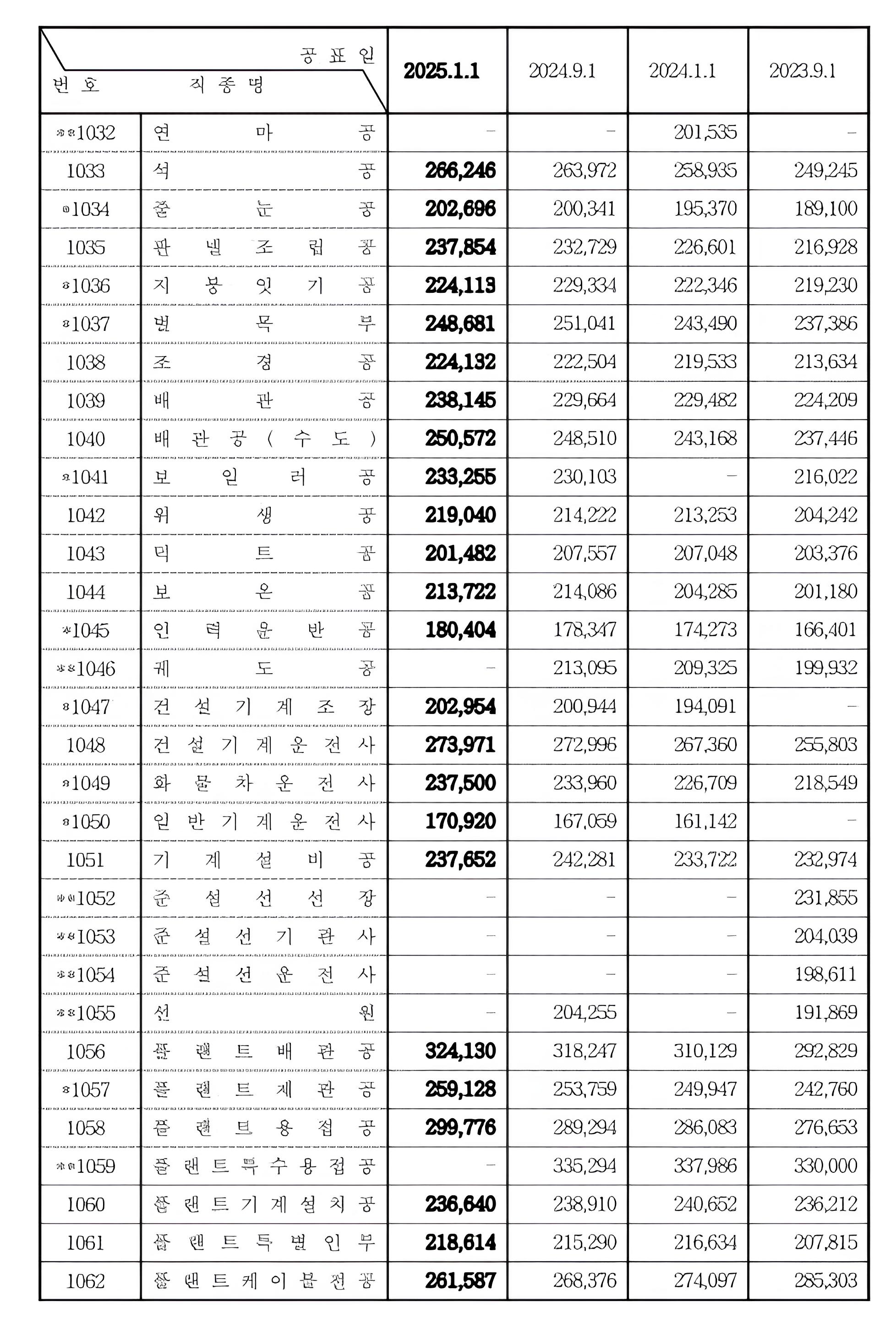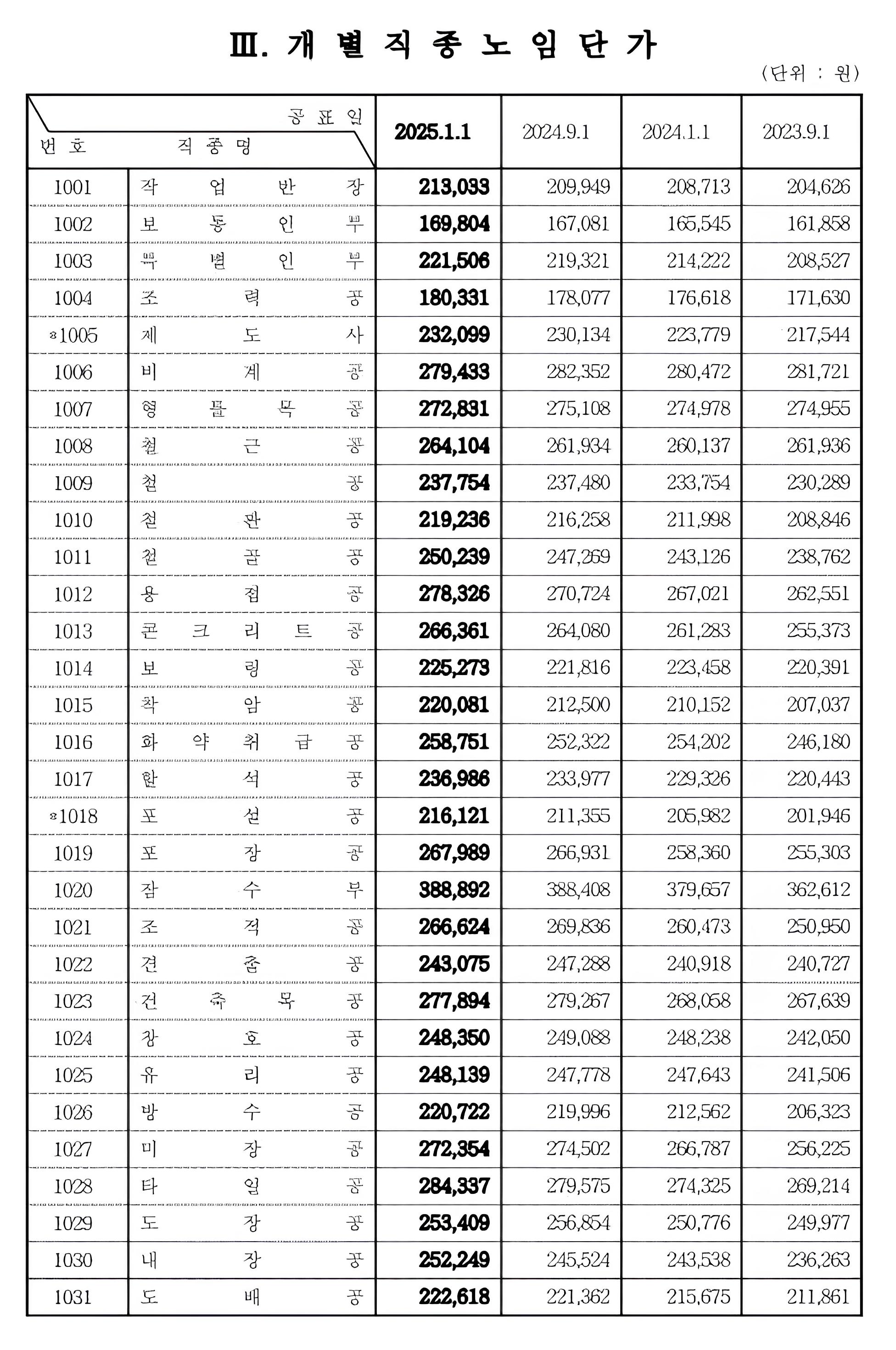 아래는 주요 직종의 2025년 상반기 노임단가를 정리한 표입니다.